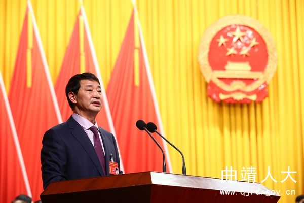 市人大常委会党组副书记、副主任马宝功向大会报告曲靖市人大常委会工作
